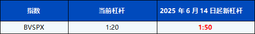 您好,为进一步提升PU Prime的竞争力和完善客户的交易体验,PU Prime从2025年6月14日起将对指数产品 – BVSPX的杠杆进行优化。